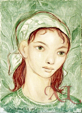 Code XL : xavier de langlais-OR-HSB-JFRV-JAU-SD-1955 XI 15 Titre Etude : 1955 XI 15 – visage “Jeune fille à la robe verte” …