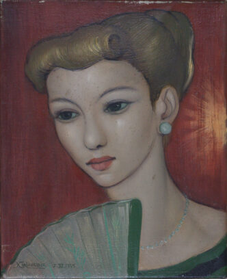 Code XL : xavierdelanglais-OR-HST-VFE-ROU-1955 XII 17 Titre : 1955 XII 17 Visage de femme à l’évantail (VFE) Technique : Huile …