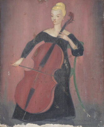 Code XL : xavierdelanglais-OR-HSB-ADT-VER-1957 VII 23 Titre : 1957 VII 23 Femme au violoncelle (ADT) Technique : Huile sur Bois (HSB) …