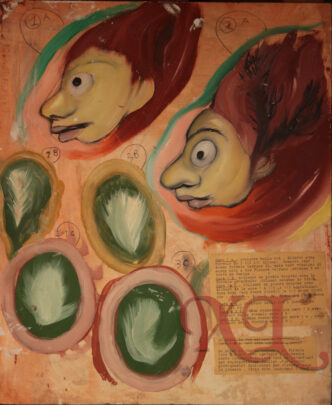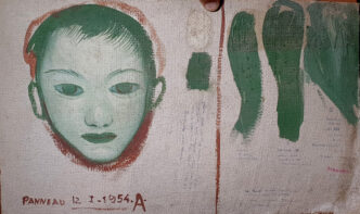 Code XL : xavier de langlais-OR-HSB-VNF-NSND-VER-1957 circa Titre Etude : Etude : “Visage” et formule tempera (VNF) au dos du précédent Technique …