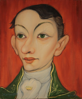 Code XL : xavier de langlais-OR-HSB-VVF-SD-1952 V 17 Titre Etude : “Caricature comtale ” (VVF) Technique : Huile sur bois (HSB) Description …