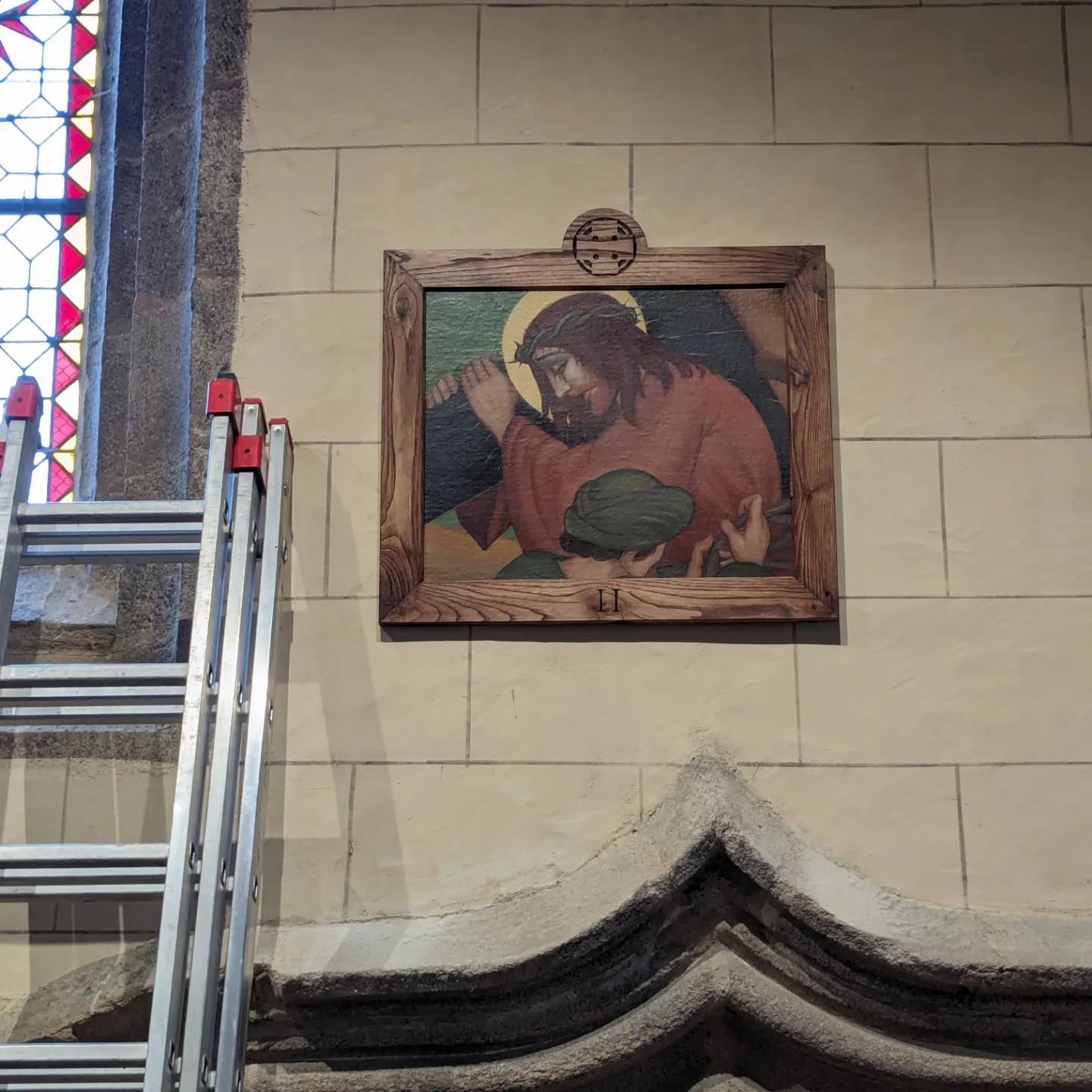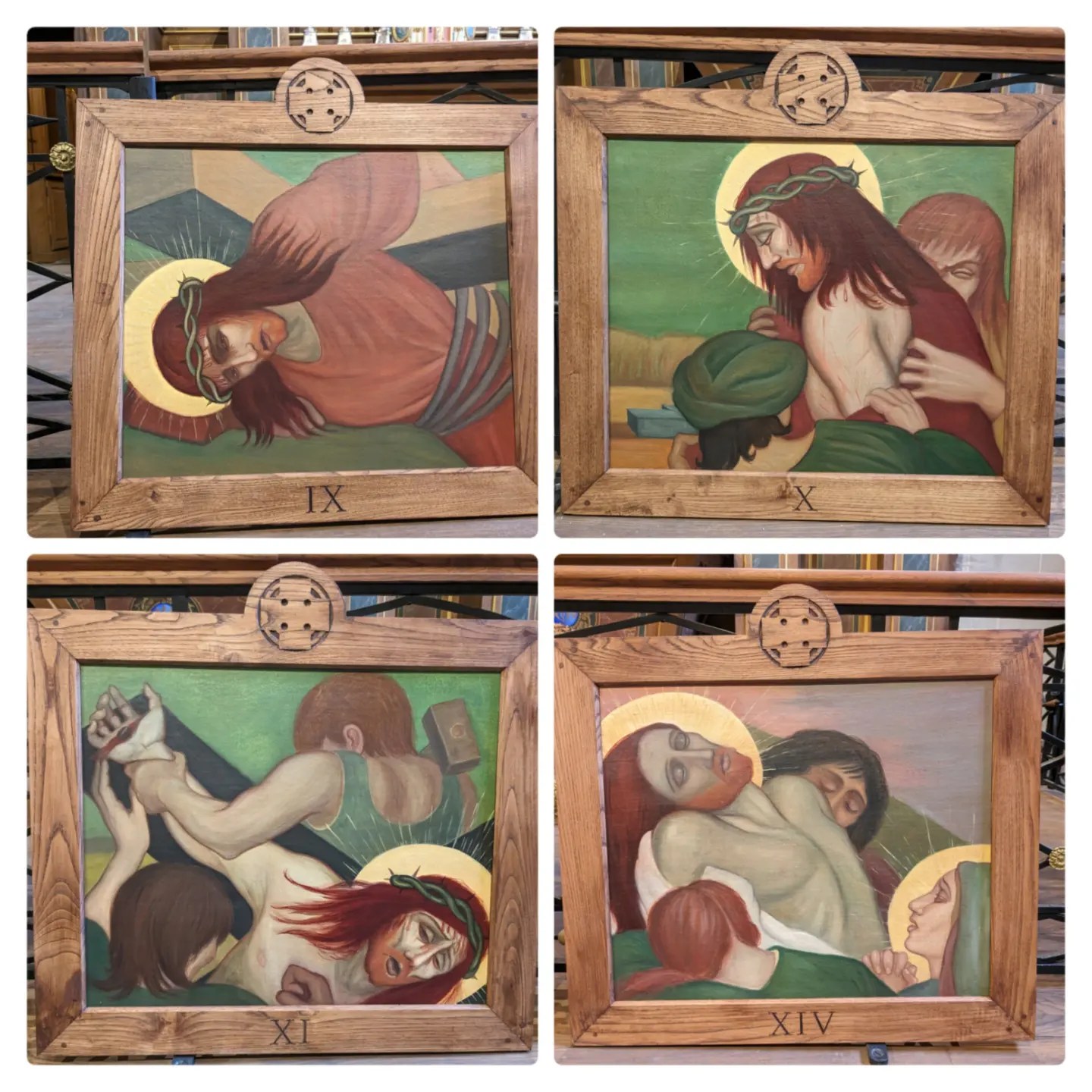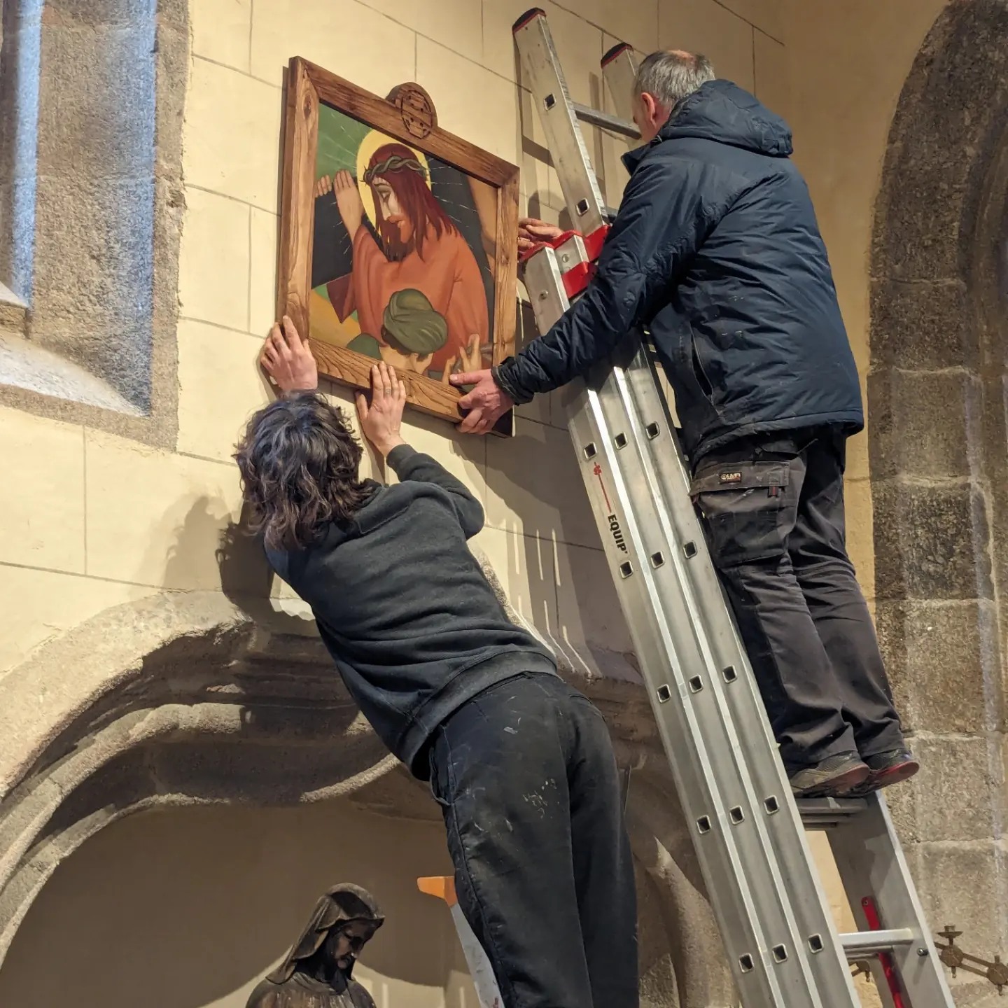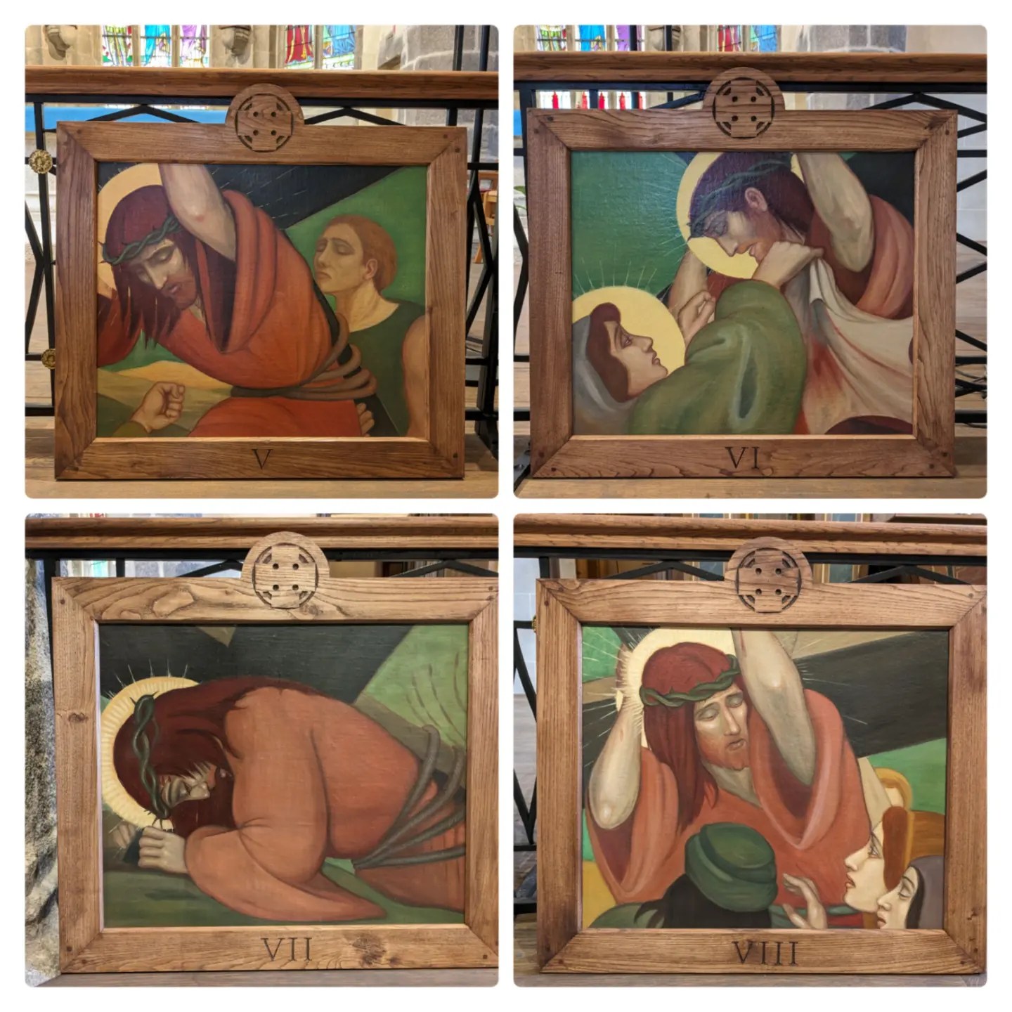Les copies de 12 stations de chemin de croix d’après Xavier de Langlais sont désormais encadrées et accrochées à l’église de Trémel dans les Côtes d’Armor.