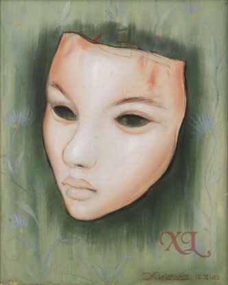 Code XL : xavierdelanglais-OR-HSB-MAS-DS-VER-1955-XI-16 Titre : Etude de masque (mas) Technique : Huile sur Bois (HSB) Description : Etude de masque sur …