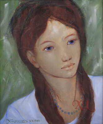 Code XL : xavierdelanglais-OR-FCB-HST-DS-VER-1970-X-3 Titre : Femme au chemisier blanc (FCB) Technique : Huile sur Toile (HST) Description : Femme brune aux …